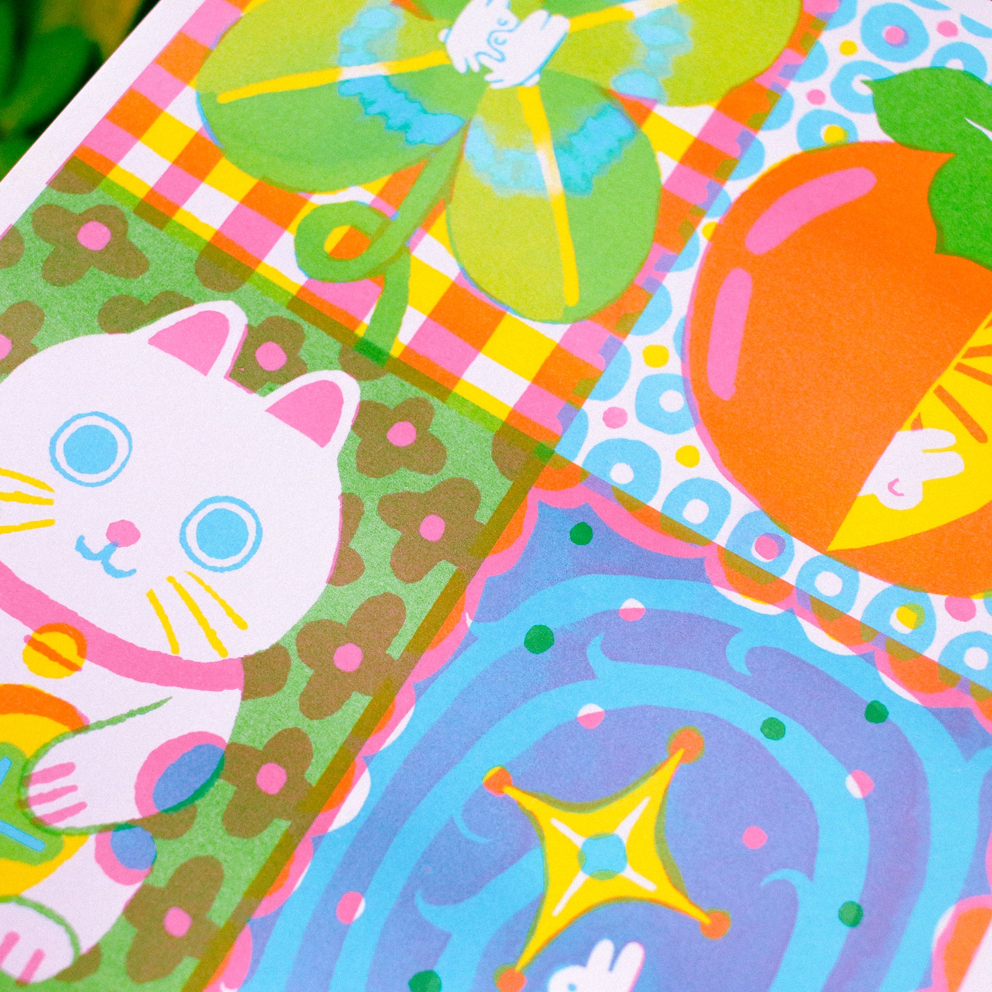 'A Lucky Life' Risograph Print ~ 8x10. Printed on 120 lb uncoated paper. Colors may differ slightly from photograph.