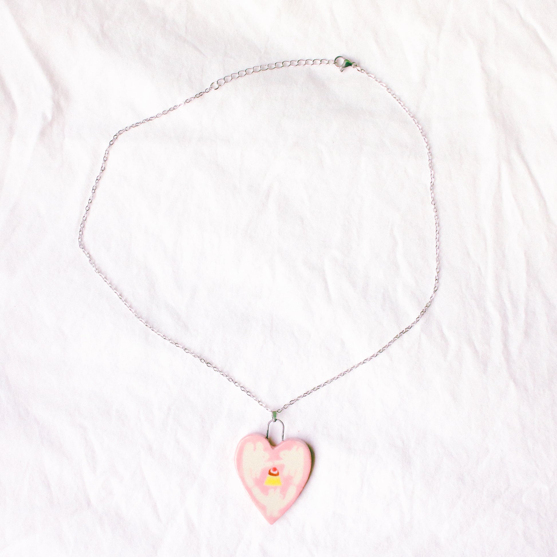 Pendant is ~1.25x1.25 inch. Please handle with care. Pendant is handmade so please expect imperfection (specks in the glaze, slight crazing, slight warping, etc).