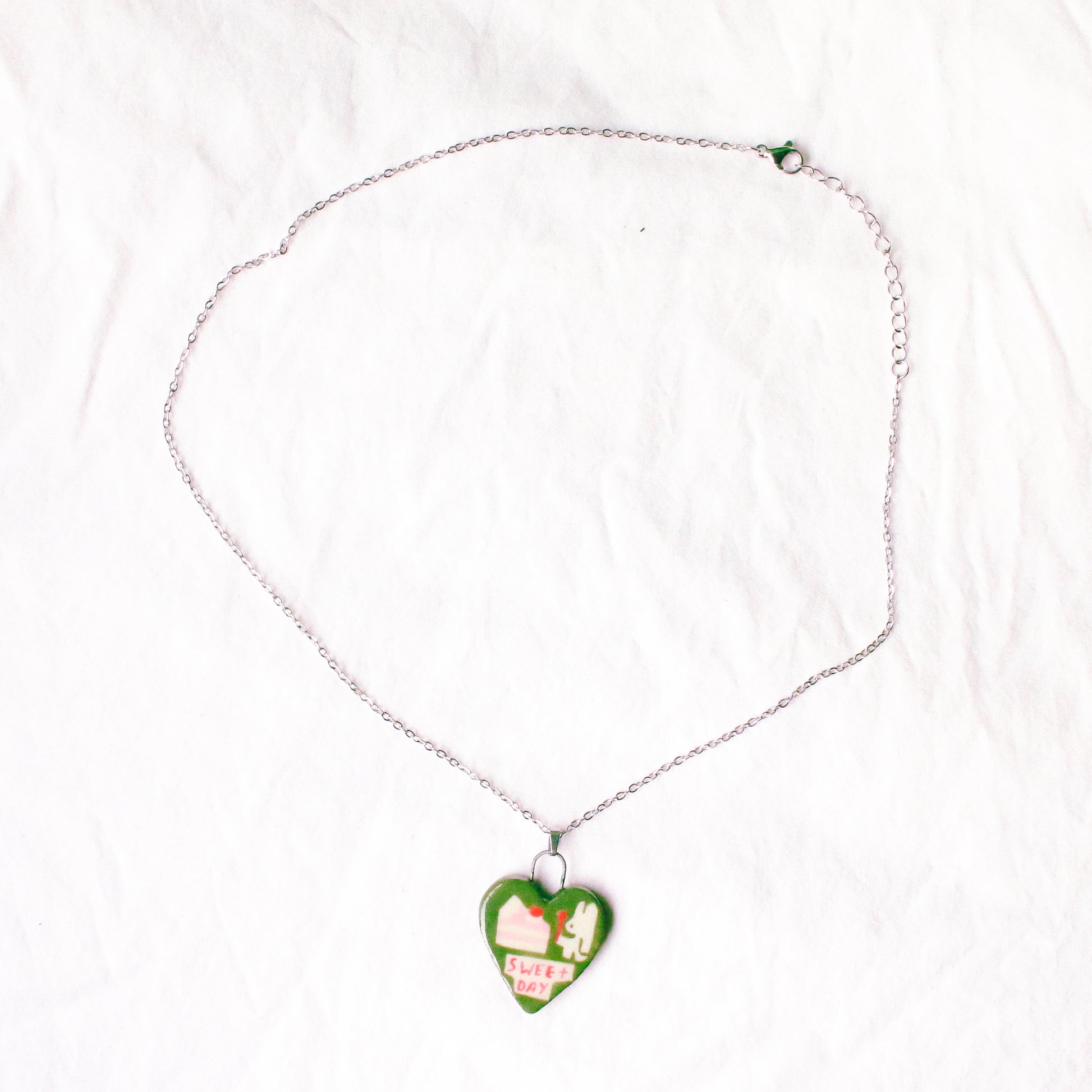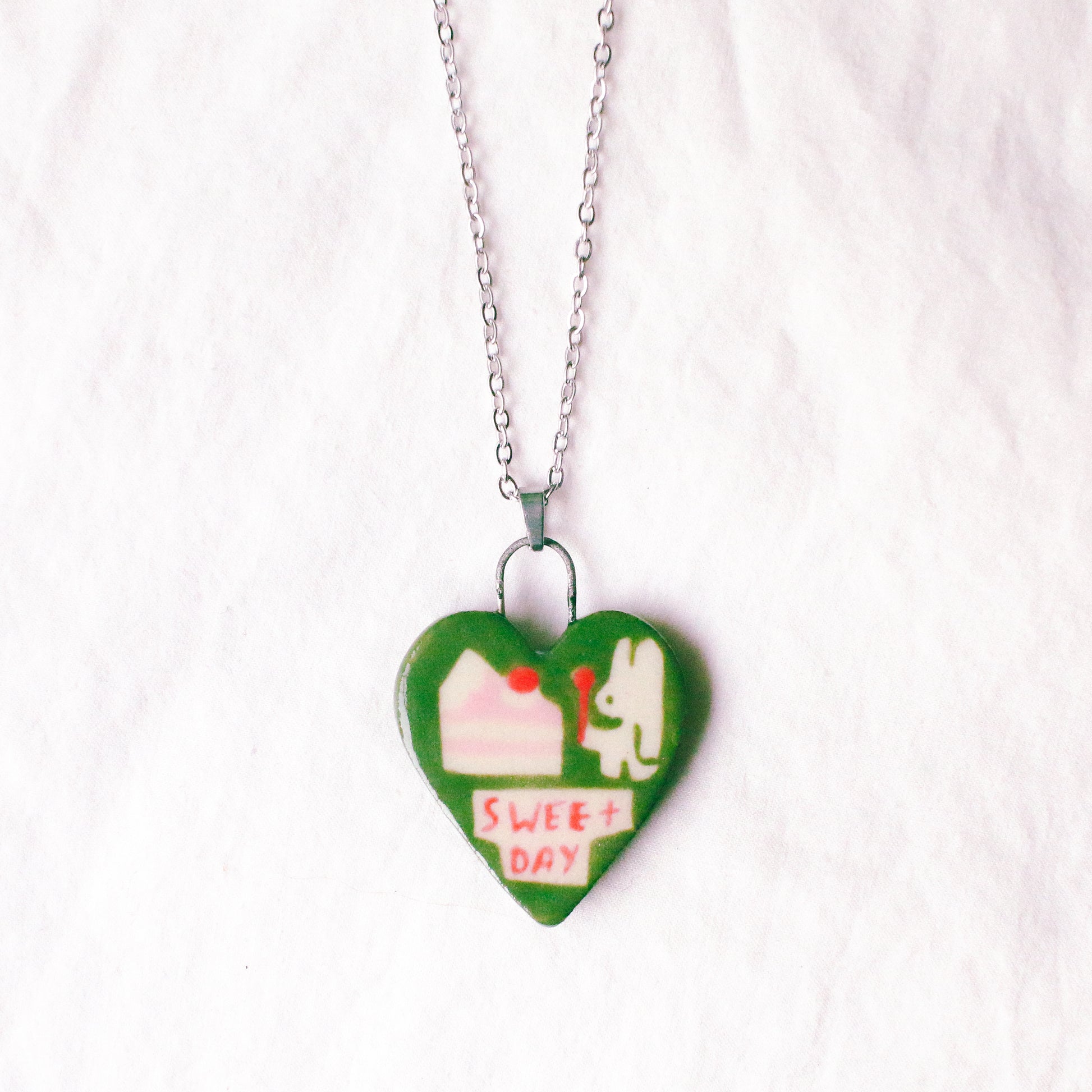 Pendant is ~1x1 inch. Please handle with care. Pendant is handmade so please expect imperfection (specks in the glaze, slight crazing, slight warping, etc).