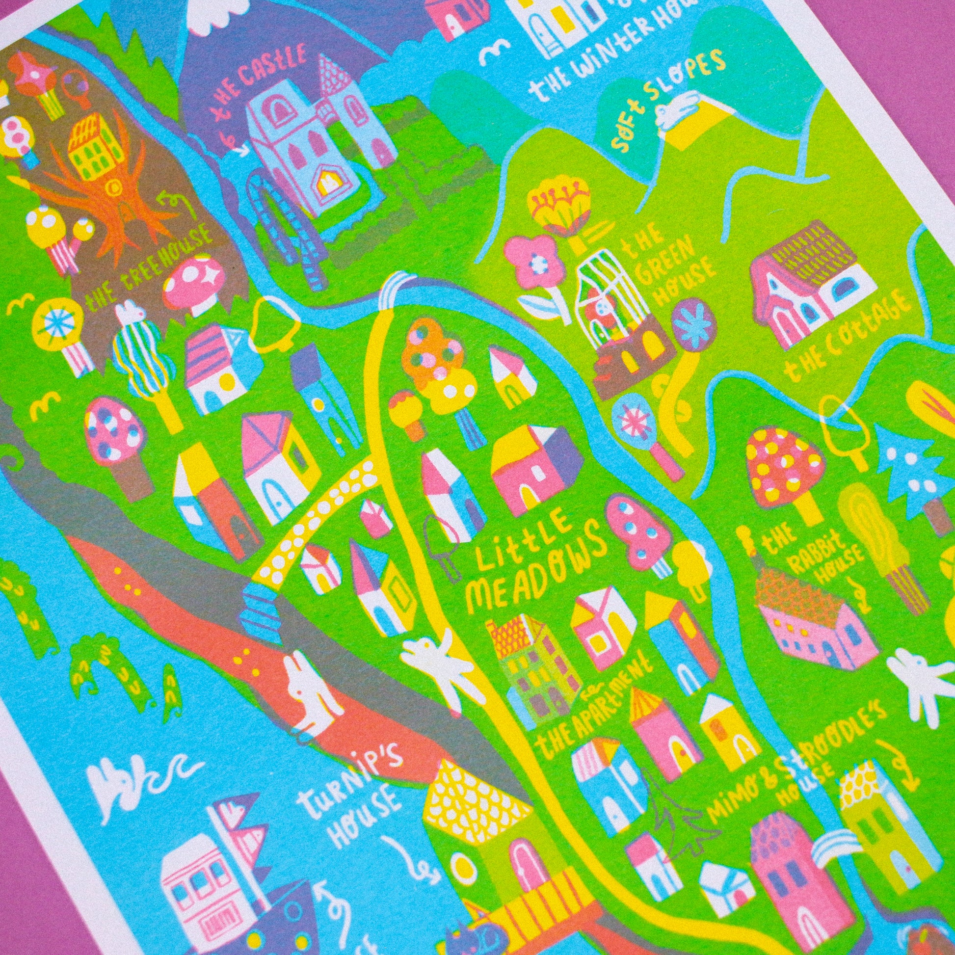Odd Rabbit Town Map Risograph Print ~ 7x10