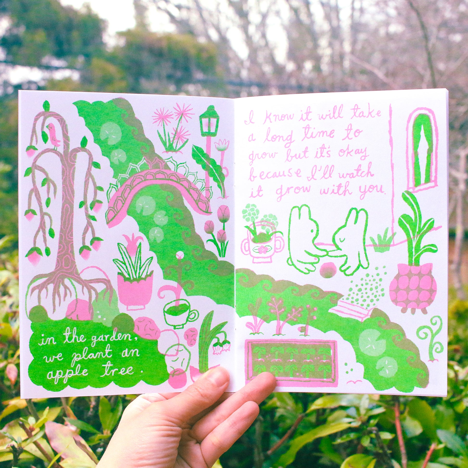 Our House is a 20 page, 3 color risograph zine. The zine is a reference to a valentine's day card so it comes with an envelope and a space on the last page to write a valentine to your valentine!