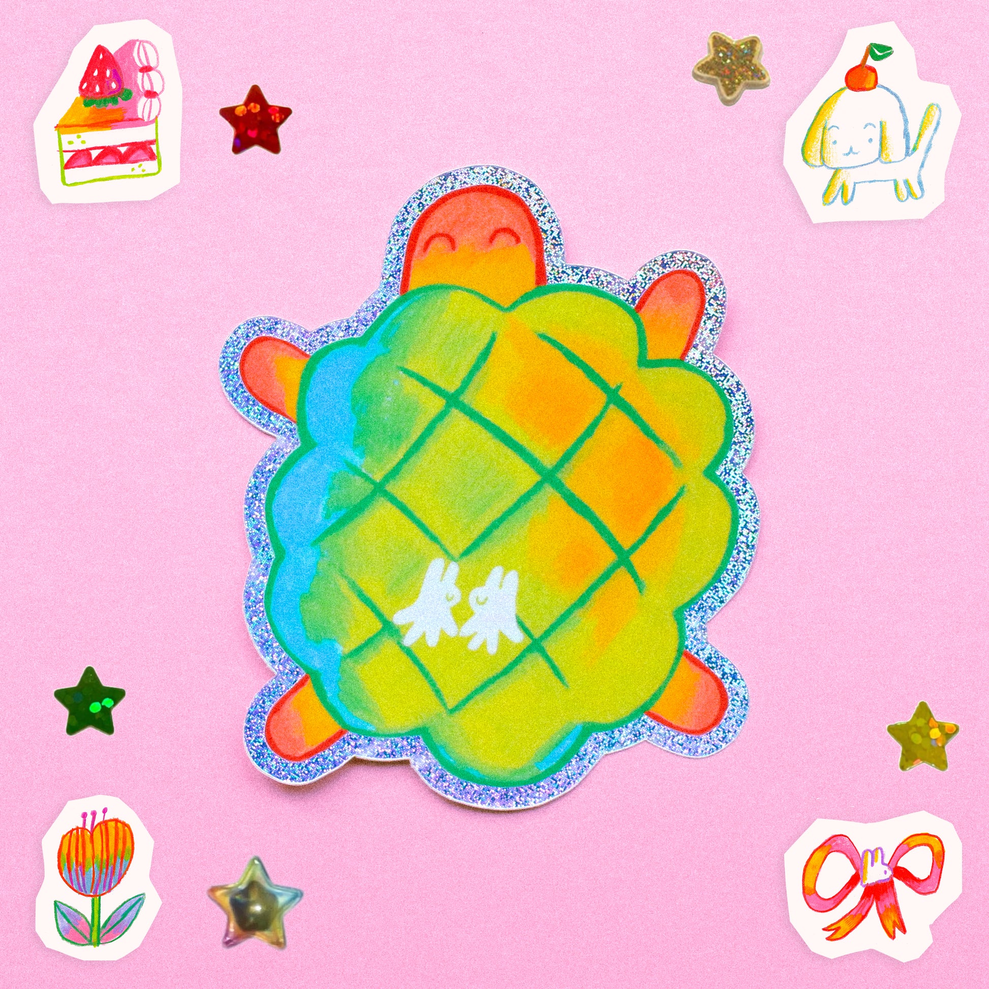 'Turtle Melon Pan Bed' Glitter Vinyl Sticker
